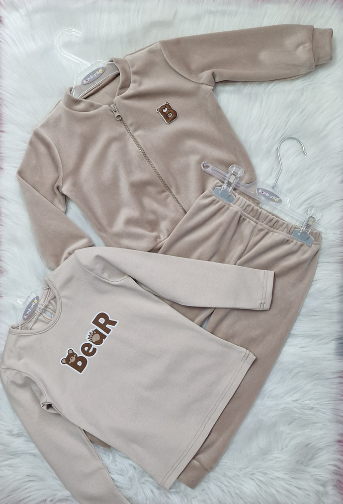 Bear Welurowy dres dziecięcy Bambarillo beżowy | Miękki komplet