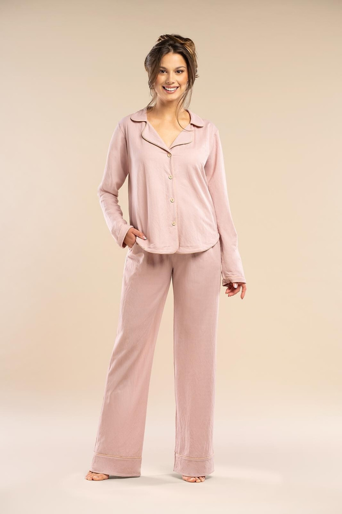 Piżama damska MK42 Blush Hour Belle Reverie – różowa, guziki