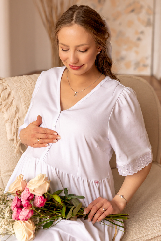 34PE Peonia z koronką Koszula ciążowa i do karmienia Marija – 100% bawełna - biały