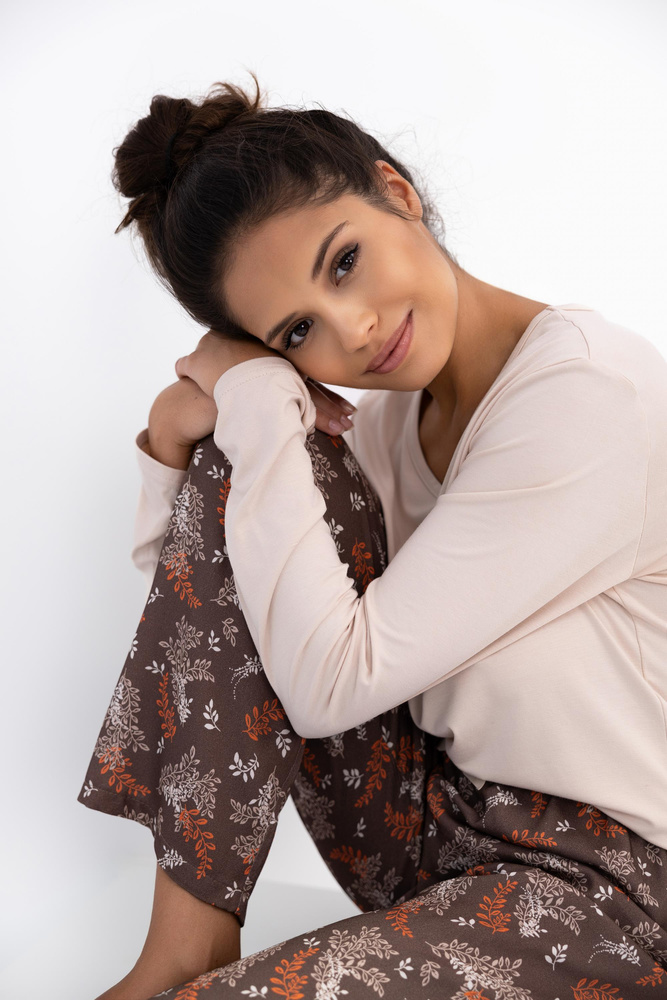 Shelby Piżama damska Sensis – wiskoza, koszulka z długim rękawem i wzorzyste spodnie