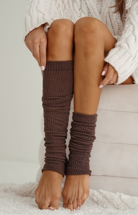 1528-001 Getry damskie Milena brązowe – bawełniane, prążkowane, wygodne