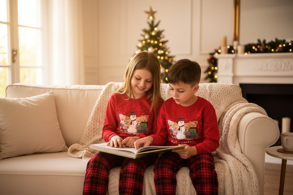 Piżama Winter w wersji chłopięcej to klasyk świątecznych stylizacji — intensywna czerwień, zimowy nadruk i miękka, 100% naturalna bawełna, dzięki której chłopiec czuje pełen komfort przez całą zimę. To model, który rodzice kupują najczęściej na Mikołajki, wyjazdy świąteczne oraz rodzinne zestawy.
