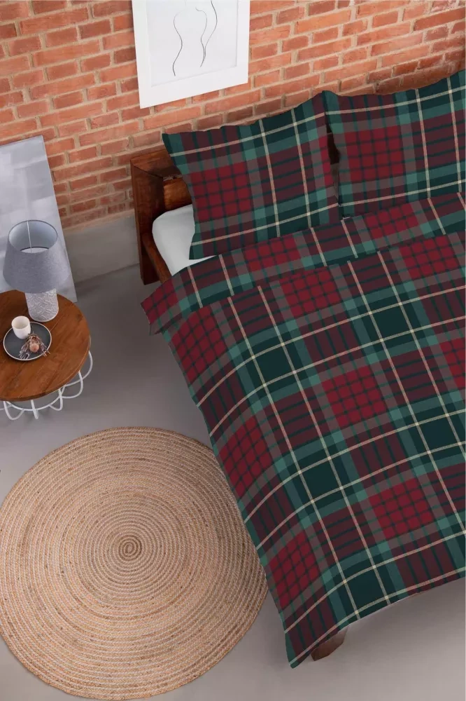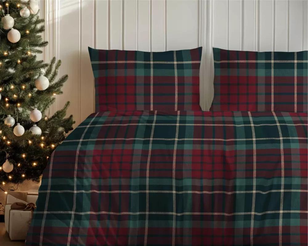 5623 A Magia Świąt Pościel flanelowa świąteczna Detexpol krata czerwono-zielona– bawełna 100%, 160 g/m², zamek, OEKO-TEX®