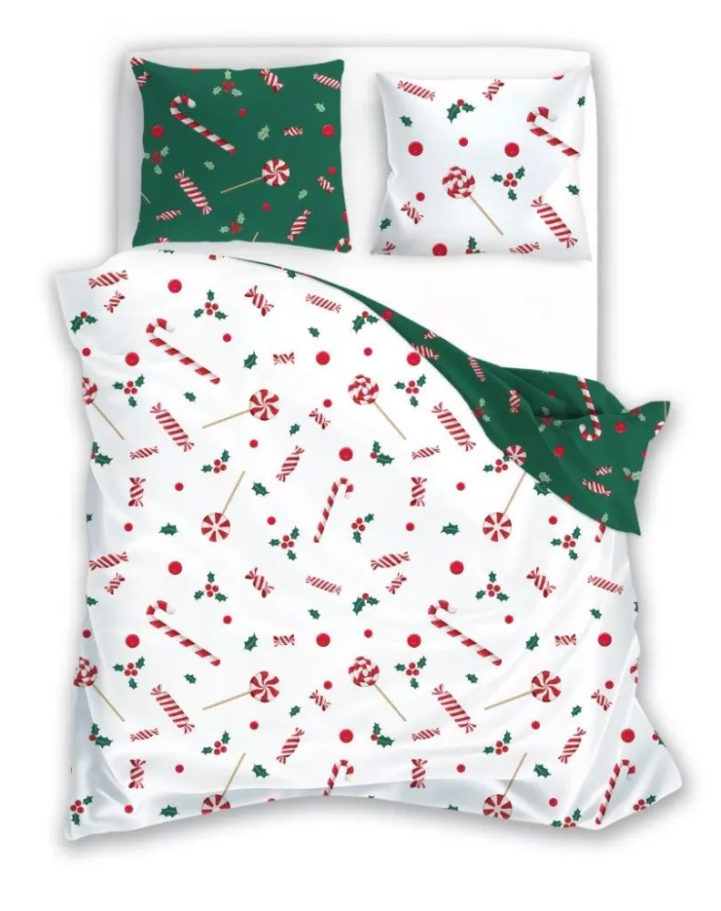 Scandic 064 Pościel świąteczna Scandic Faro biała zielona lizaki cukierki– dwustronna bawełna 100%, zamek