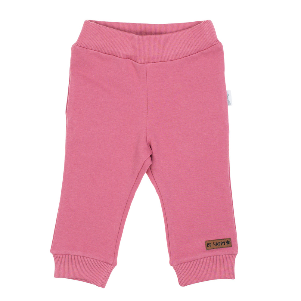 Spodnie uszyte z bawełny dresowej z domieszką elastanu, co powoduje, że materiał nie odkształca się, a zarazem jest miły w dotyku. W pasie posiadają wygodną gumkę nie uciskającą brzuszka. Ubranko charakteryzuje wygodny fason, nogawki zostały zakończone ściągaczami pod kolor spodenek.