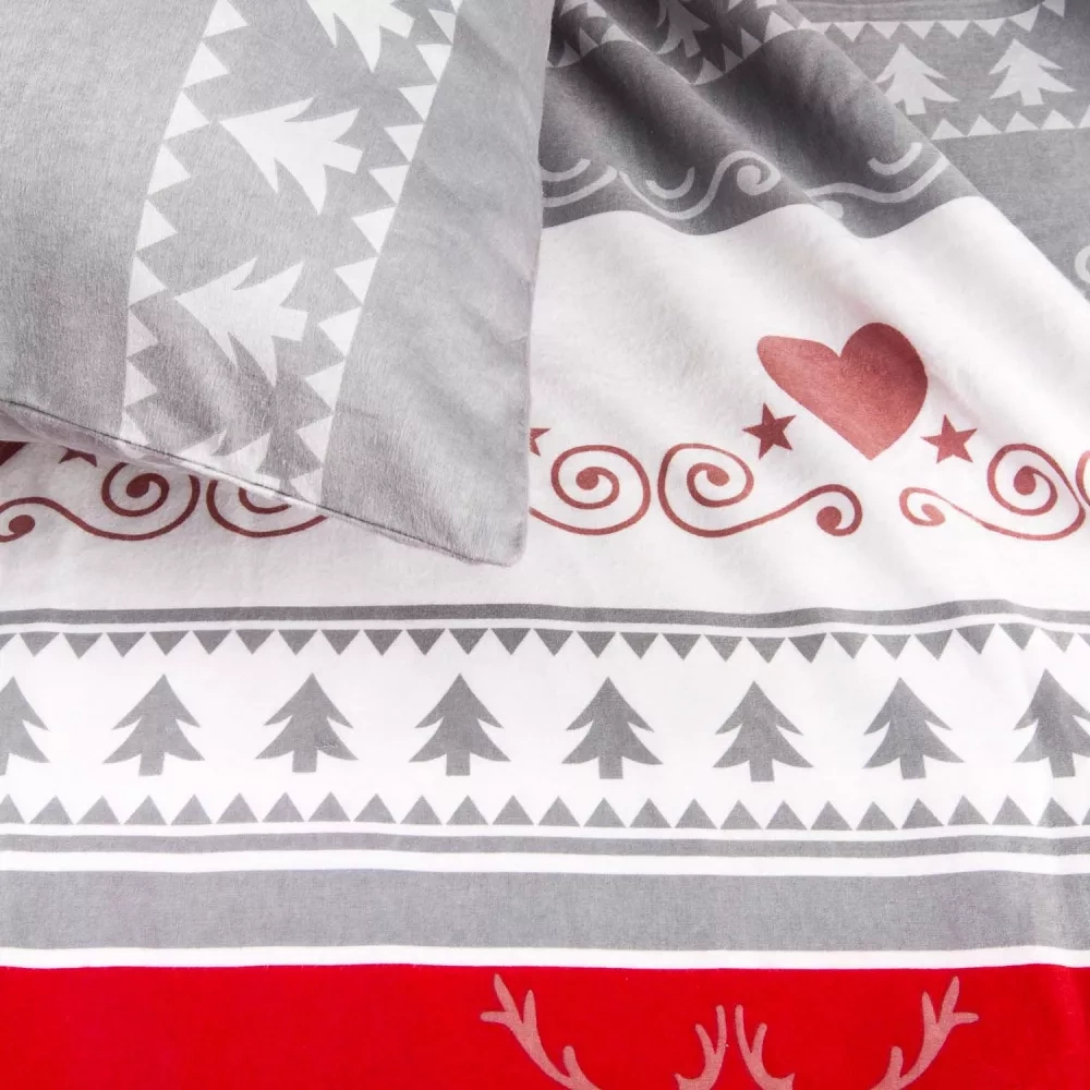 31516/1 Pościel flanelowa świąteczna Flanelove Darymex szara czerwona– komplet 100% bawełna, ciepła i miękka