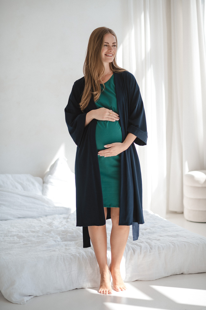 - Szlafrok ciążowy Milk&Love z bawełny z elastanem. Miękki, oddychający, z rękawami 7/8 – idealny w ciąży, po porodzie i w połogu.