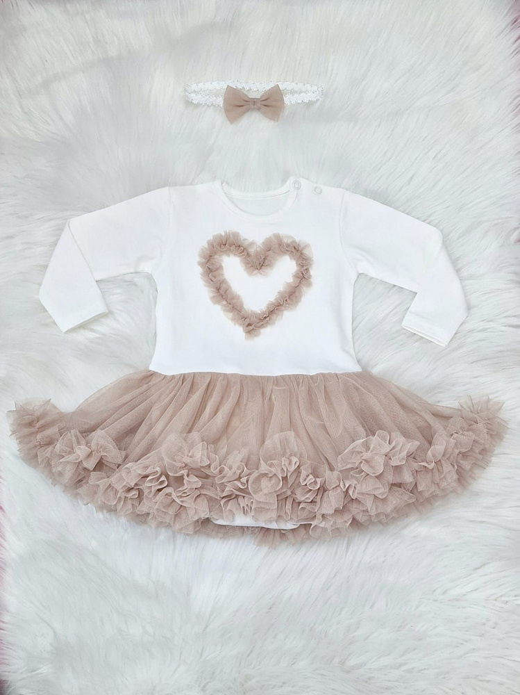 Body ma doszytą tiulową spódniczkę oraz ozdobne rękawki.