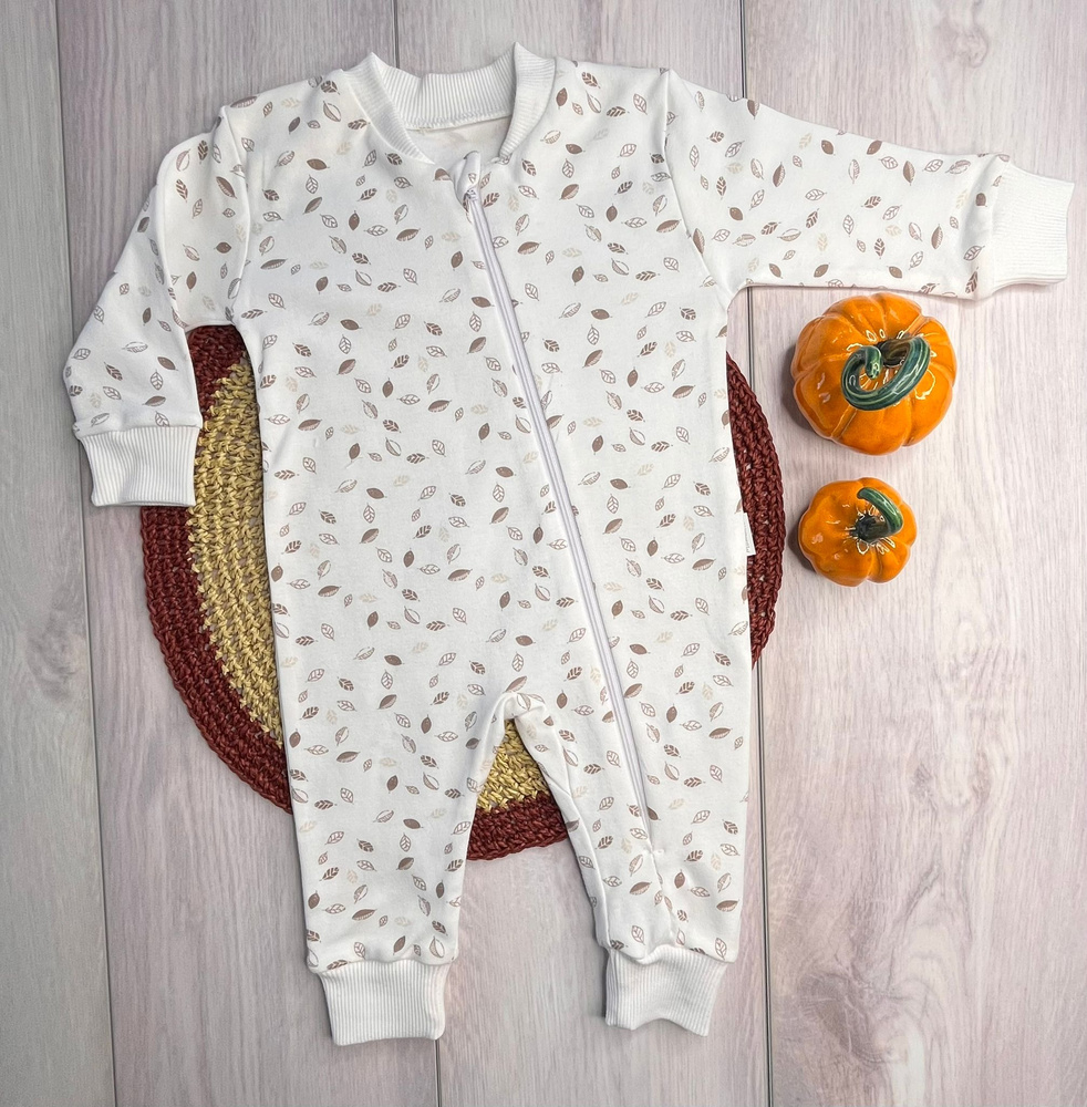 • Bawełniany pajac niemowlęcy PS15441 listki Mamatti. Komfortowy krój, bez stópek.