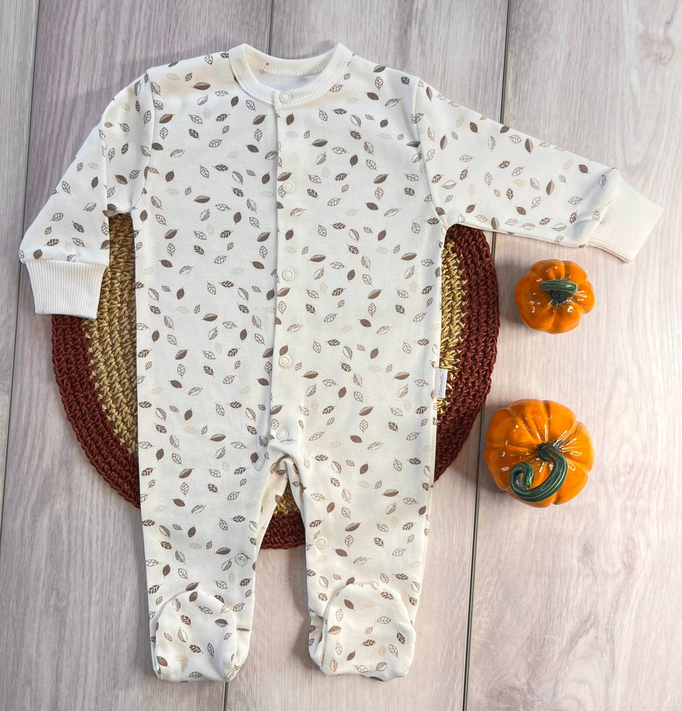 Bawełniany pajacyk niemowlęcy Mamatti PA15440 listki – zapinany na napy
