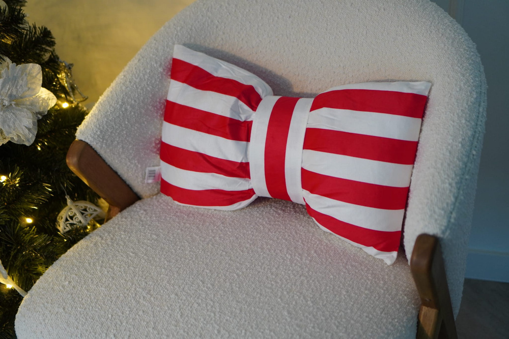• Stylowa poduszka świąteczna Kokarda z miękkiego weluru. Przytulna, elegancka i idealna do świątecznej aranżacji salonu lub sypialni.