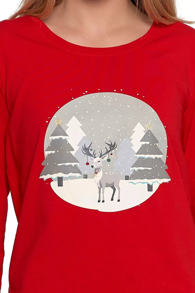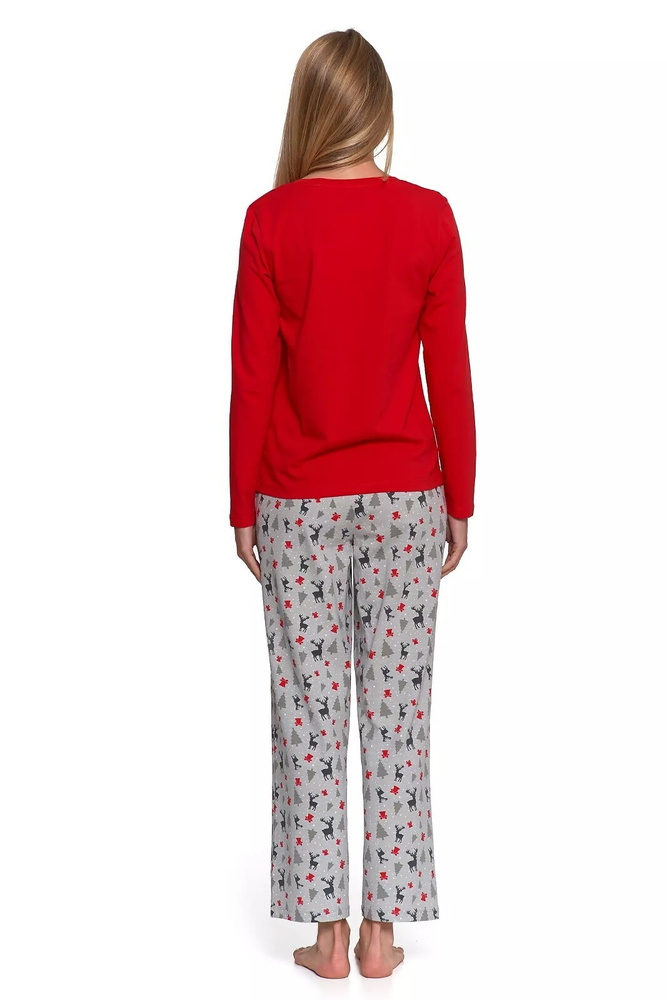 Piżama damska Moraj PDD4800-012 czerwona– bawełniana, z nadrukiem i wzorzystymi spodniami