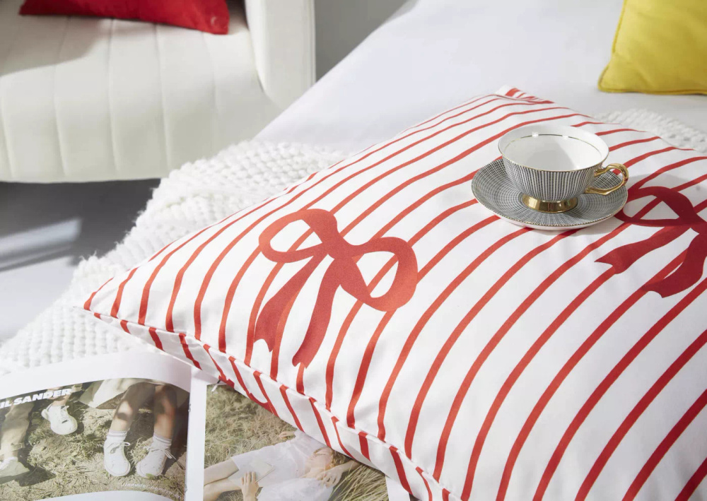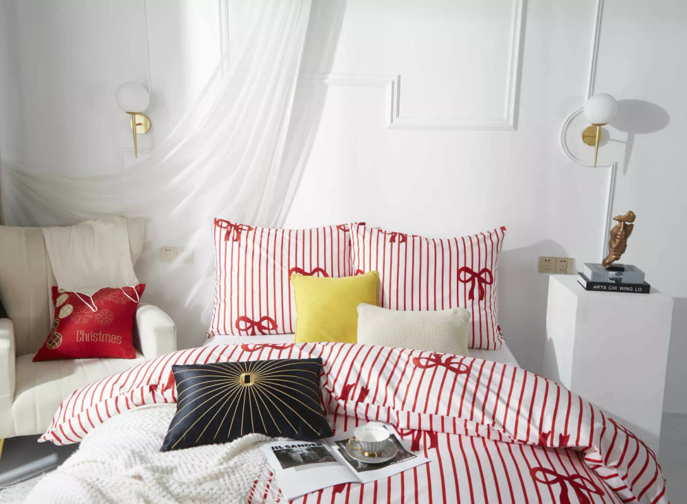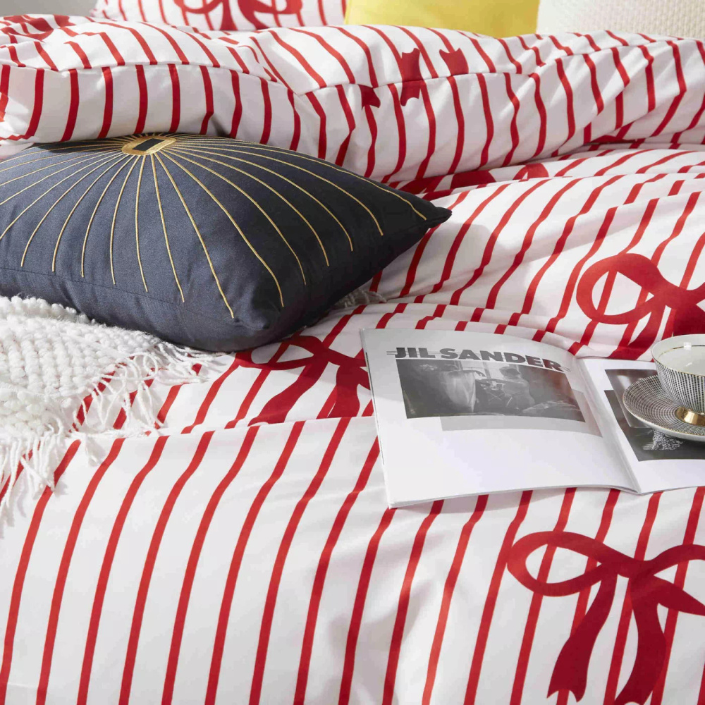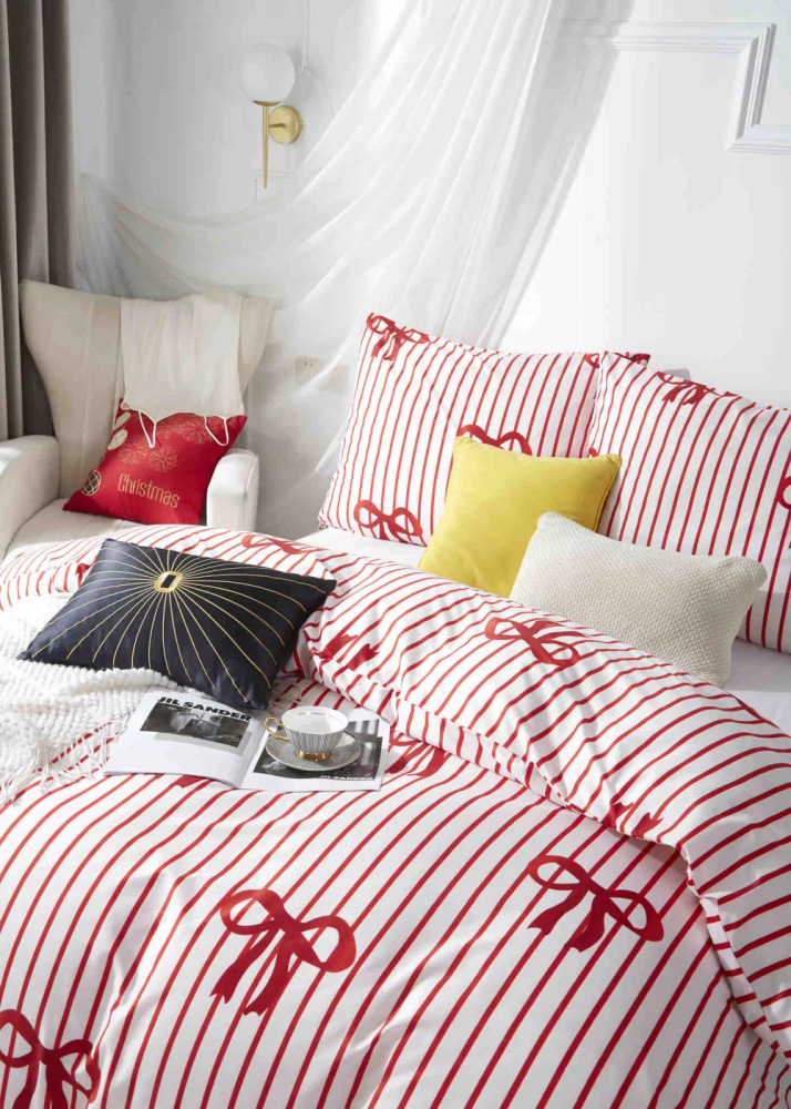 Xmass Bow Pościel mikrosatynowa świąteczna biała czerwona kokardy I25 Spod Igły i Nitki – miękka, gładka i trwała
