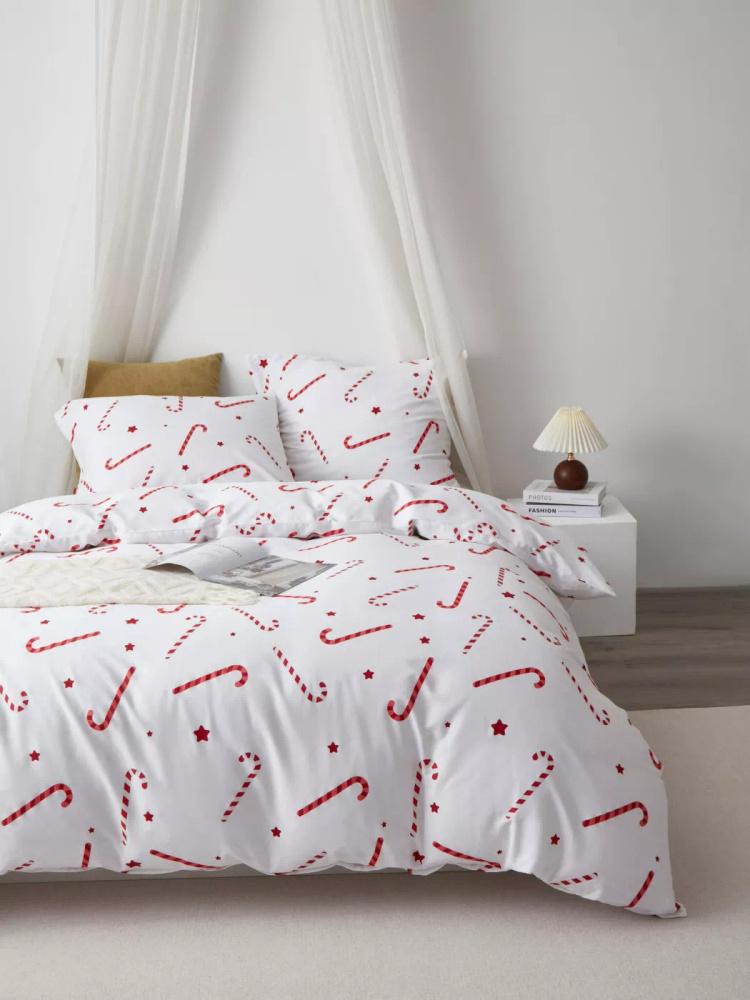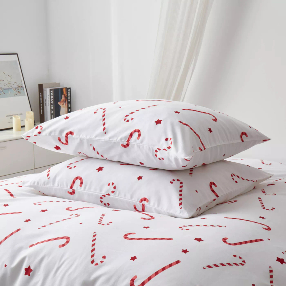 Candycanes Pościel świąteczna bawełniana satynowa Spod Igły i Nitki biała czerwona cukierki – elegancka i miękka