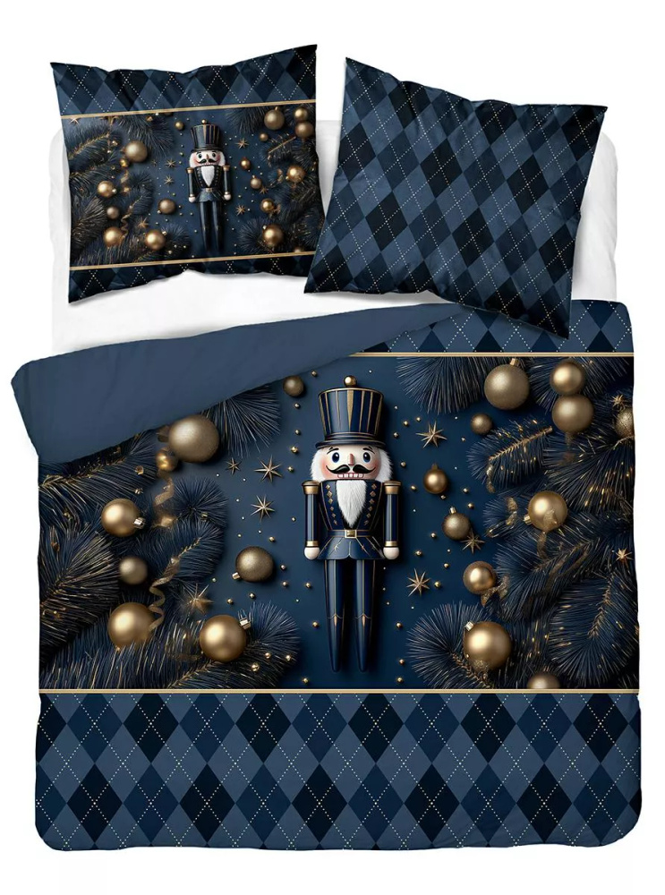 5823 A Pościel świąteczna bawełniana Christmas Dreams Detexpol granatowa z Dziadkiem do orzechów– komplet bożonarodzeniowy 100% bawełna