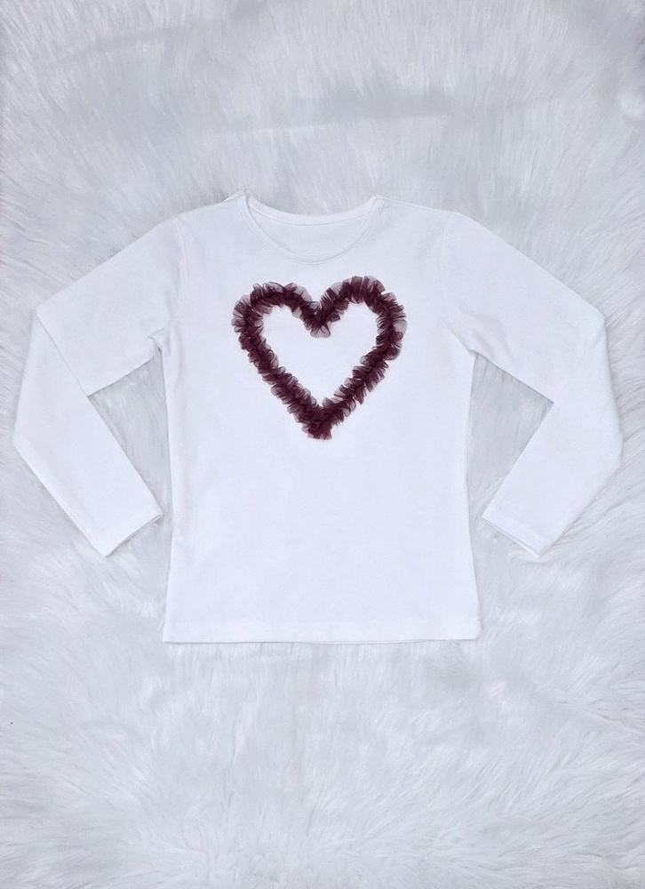 Bluzka dziewczęca Mia Bambarillo ecru bordowe serce– bawełniana z tiulowym sercem