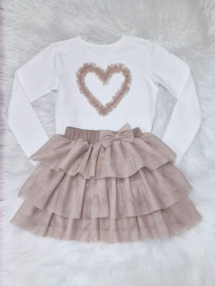 Bluzka dziewczęca Mia Bambarillo ecru beżowe serce– bawełniana z tiulowym sercem