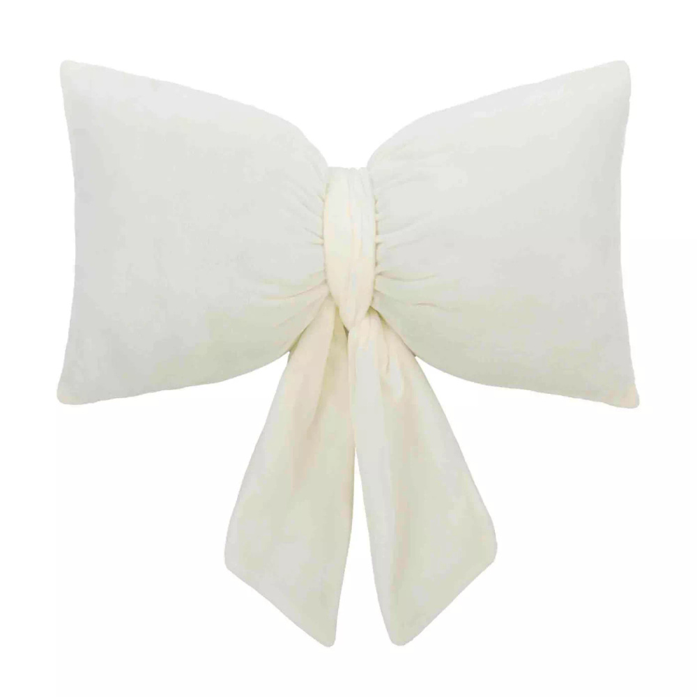 - Elegancka poduszka świąteczna w kształcie kokardy, wykonana z miękkiego weluru 100% velvet. Subtelny biały kolor wprowadza do wnętrza magiczny klimat, a certyfikat Oeko-Tex gwarantuje bezpieczeństwo materiału.