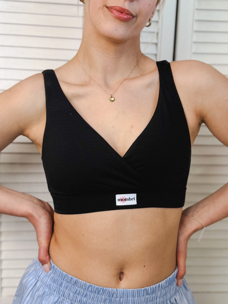 Mombri Klasyk Milk&Love nieprzemakalny biustonosz do karmienia czarny