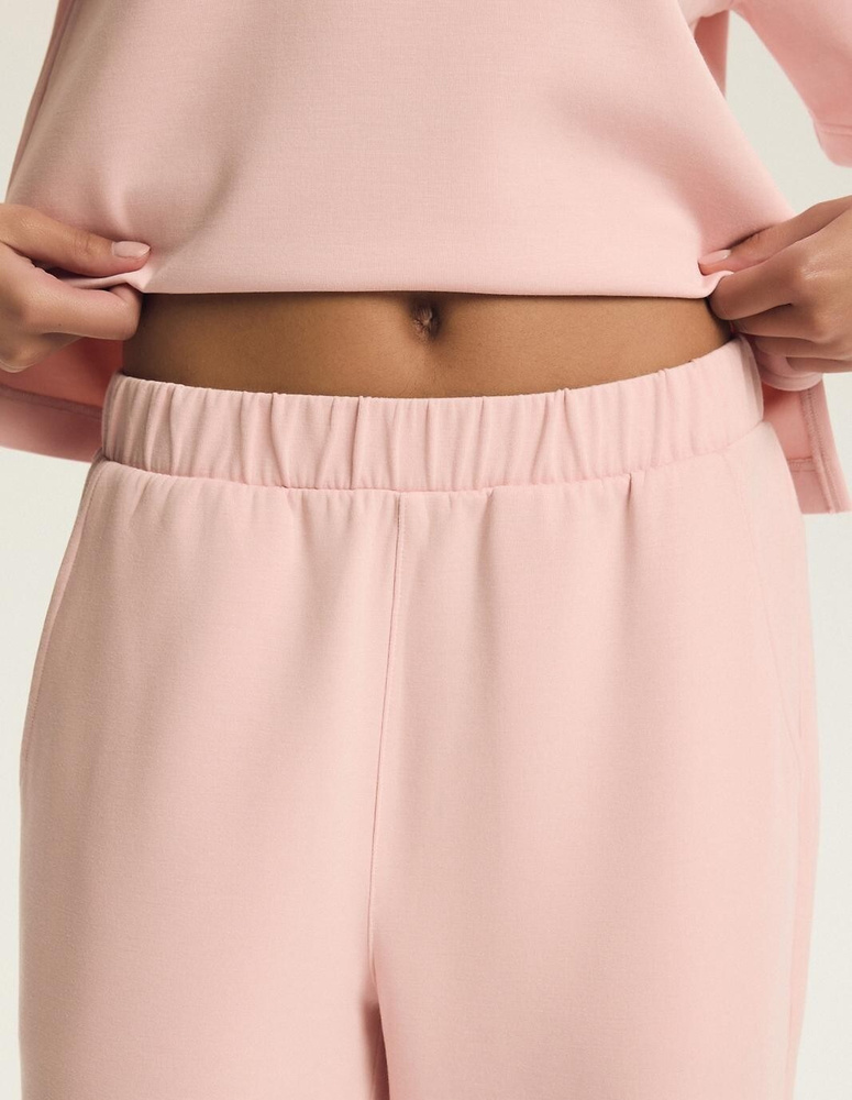 Ten damski komplet domowy szczególnie polecamy kobietom, które cenią komfortowy homewear o minimalistycznym, kobiecym charakterze. Delikatny różowy kolor świetnie komponuje się z miękkimi kapciami, kardiganem lub lekką narzutką. To także dobry wybór na weekendowe poranki, podróż czy jako stylowy strój do odpoczynku.