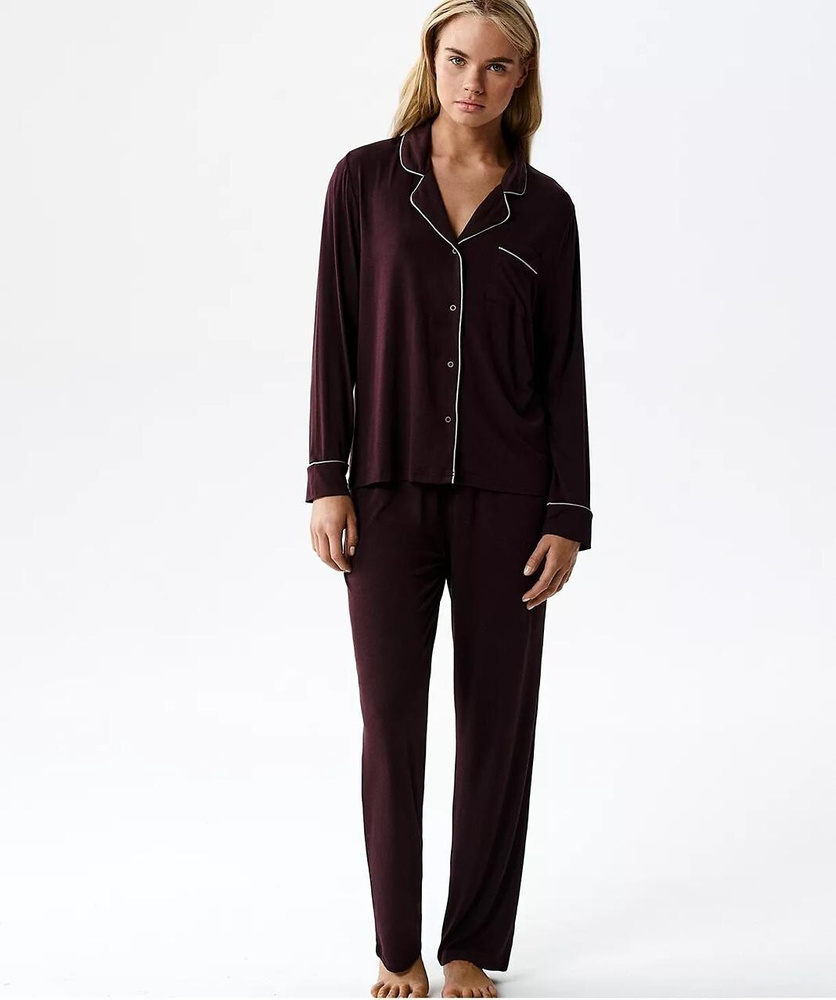 Piżama damska modalowa Atlantic NLP-495 z kołnierzykiem i długim rękawem wino