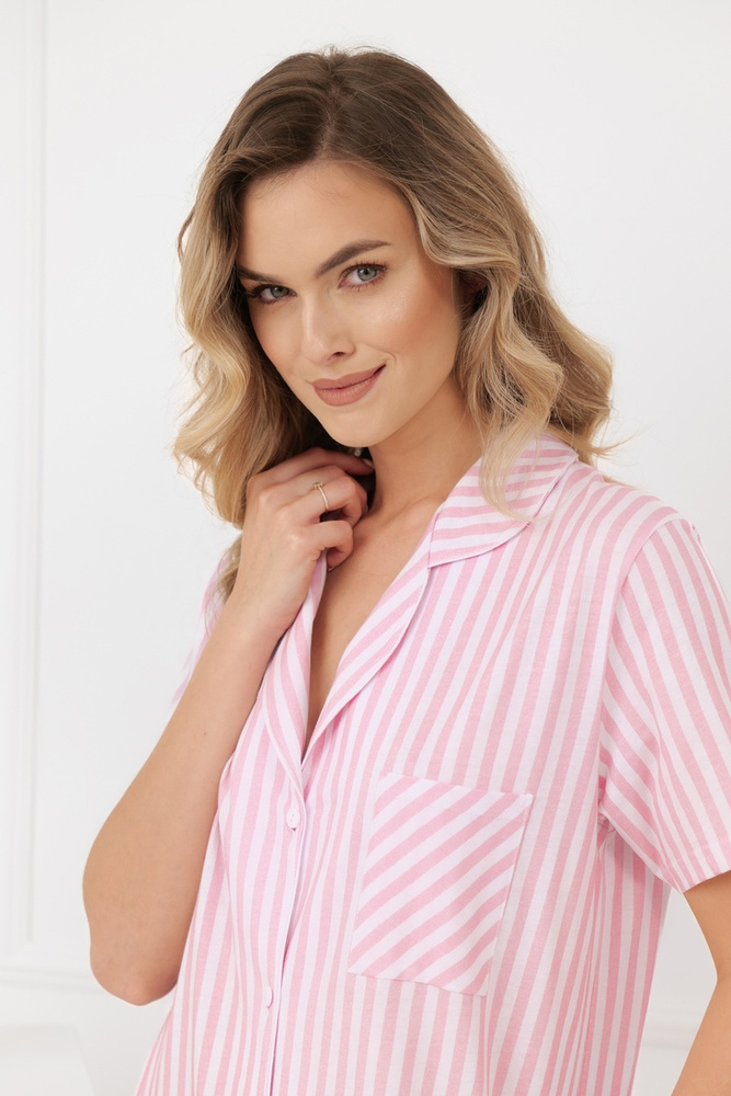 Koszula nocna Genna Italian Fashion 100% bawełna paski krótki rękaw-różowa