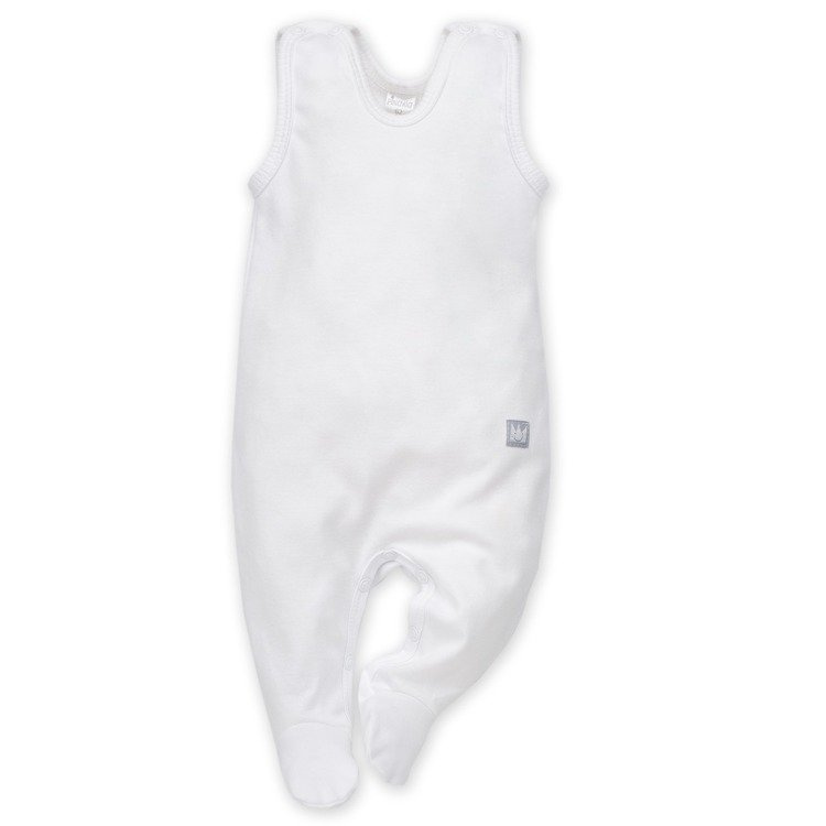 Śpiochy z miękkiej dzianiny bawełnianej. Zapięcia na bezniklowe napy na ramionach i w kroku zapewniają maksymalną wygodę użytkowania.