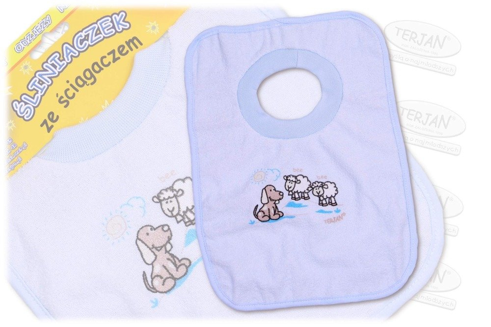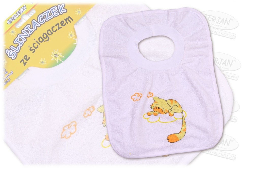 Produkt marki Terjan wykonany jest z 100% bawełny frotte. Podszycie śliniaka to miękka nieprzemakalna ceratka, która zabezpiecza ubranie przed zabrudzeniem. Kolorowe nadruki przyciągają uwagę maluszka podczas posiłku. Śliniaczek zakładany jest przez główkę Maleństwa, zamiast tradycyjnego wiązania posiada delikatny ściągacz.