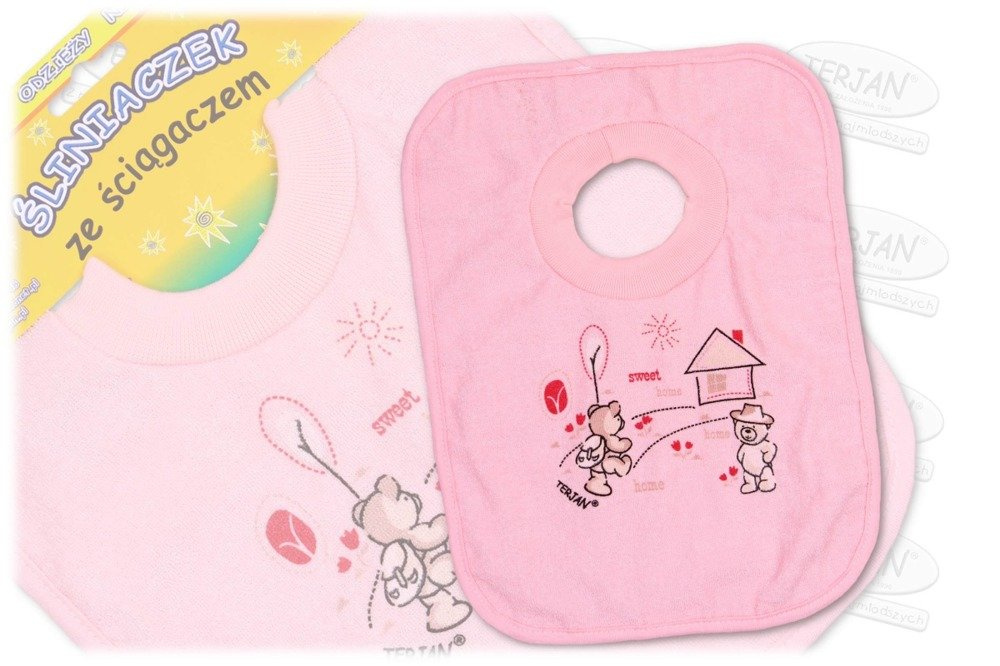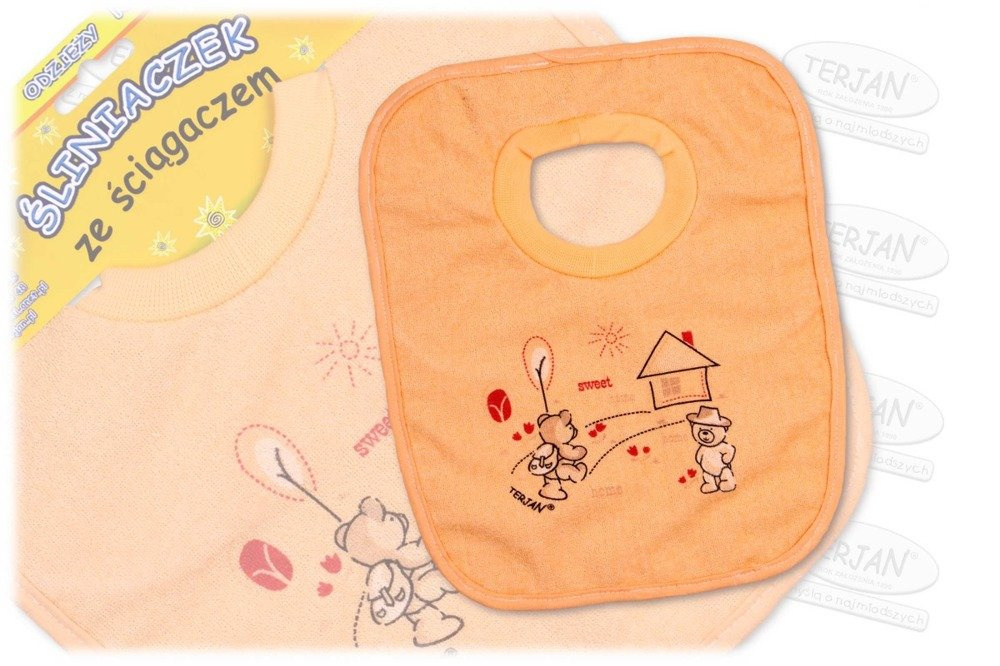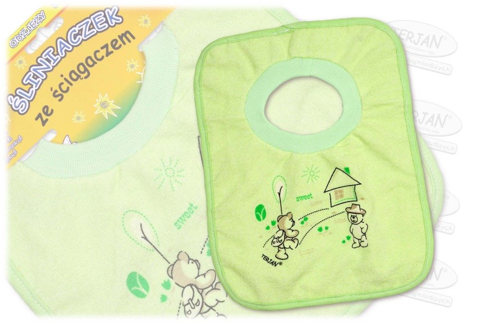 Produkt marki Terjan wykonany jest z 100% bawełny frotte. Podszycie śliniaka to miękka nieprzemakalna ceratka, która zabezpiecza ubranie przed zabrudzeniem. Kolorowe nadruki przyciągają uwagę maluszka podczas posiłku. Śliniaczek zakładany jest przez główkę Maleństwa, zamiast tradycyjnego wiązania posiada delikatny ściągacz.