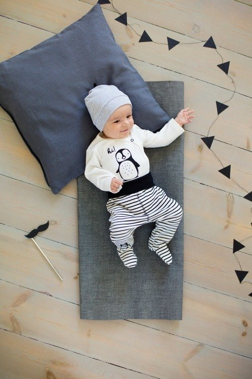 Elastyczny ściągacz w pasie zapewnia komfort maluszkowi.