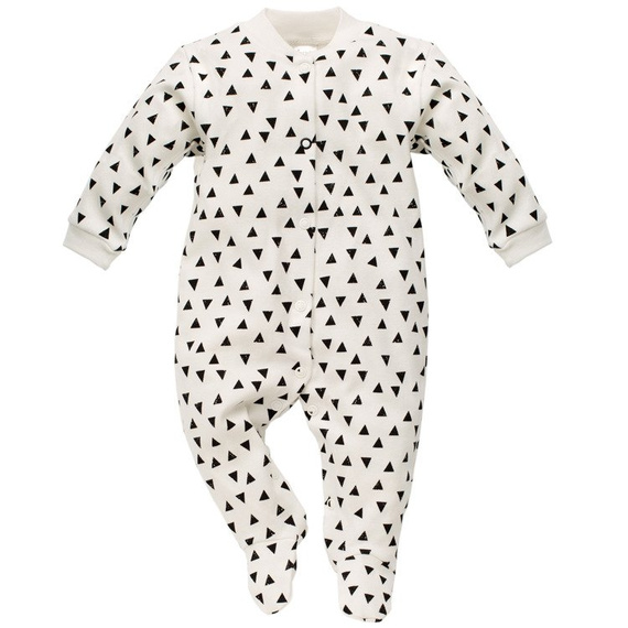 Wygodny, pajacyk ze stopkami. Całkowite rozpięcie z przodu i w kroku, dopracowany krój, miękka dzianina bawełniana.