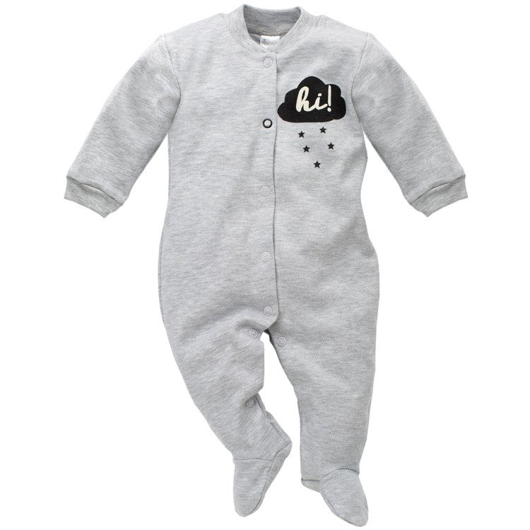 Wygodny, pajacyk ze stopkami. Całkowite rozpięcie z przodu i w kroku, dopracowany krój, miękka dzianina bawełniana.