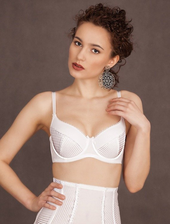 Romantyczny a zarazem niesamowicie wygodny biustonosz który idealnie modeluje i unosi biust dzięki starannie dopracowanemu krojowi oraz fiszbinom. Model posiada regulowane, nieodpinane ramiączka.