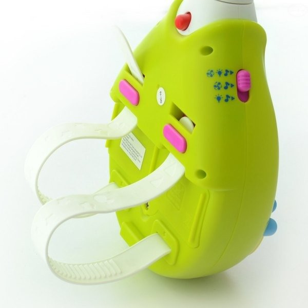 Urządzenie jest wykonane z wysokiej jakości tworzywa typu ABS, dzięki czemu zabawka jest trwała i bezpieczna. Wbudowany głośnik wysokiej jakości odtwarza czyste dźwięki. Delikatne efekty świetlne tworzą harmonijny nastrój w pokoju dziecka, nie pobudzając go.