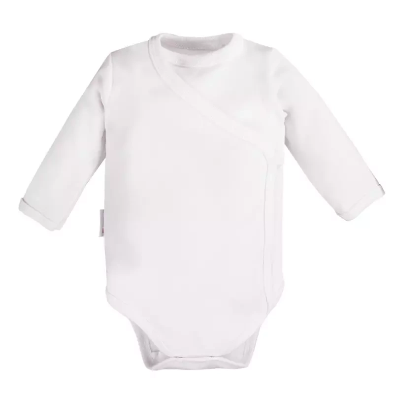 Śnieżnobiałe body kopertowe z długim rękawem,wykonane z mięciutkiej bawełny.