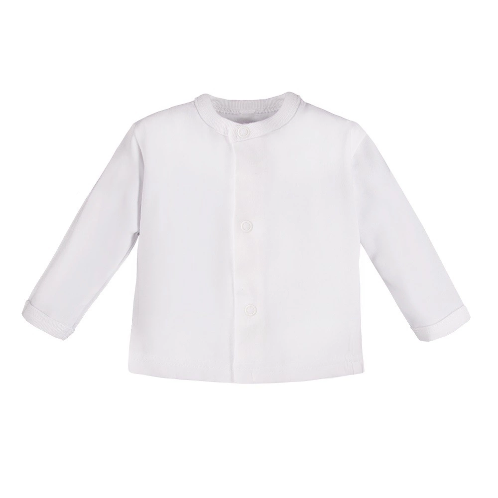 Śnieżnobiały kaftanik zapinany na napki, wykonany z mięciutkiej bawełny. Obszyty delikatną lamówką. Dostępny w rozmiarach 50 – 74.