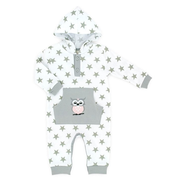 Pajac niemowlęcy z kapturem "OWL" Makoma szary