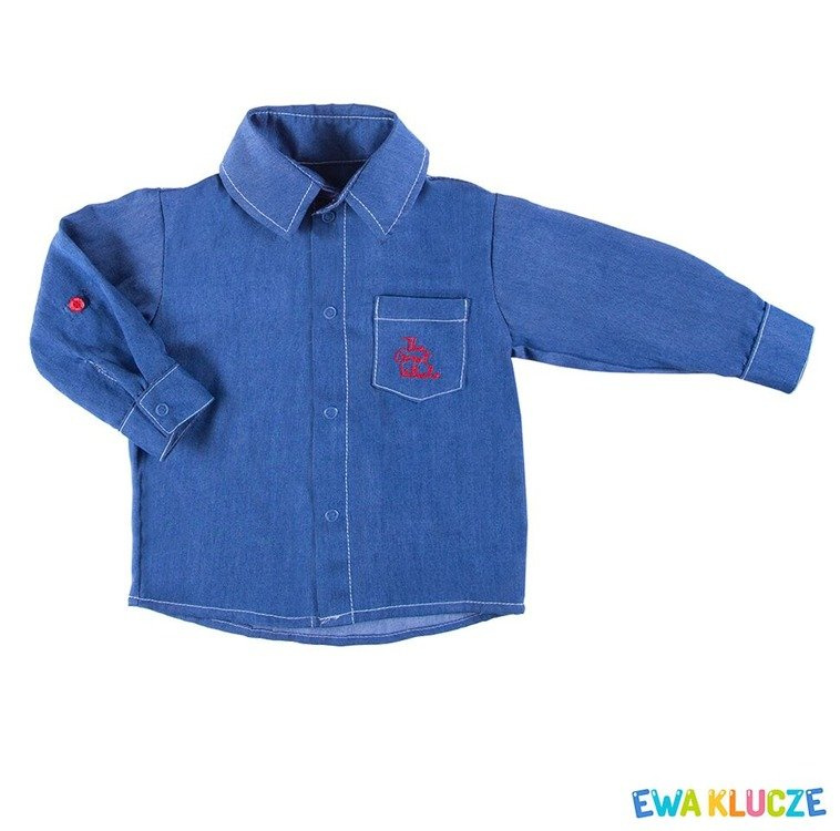Koszula jeansowa z kolekcji "Big Fish " uszyta z miękkiej i przyjemnej w dotyku dzianiny .  Na kieszonce haft w czerwonym kolorze.