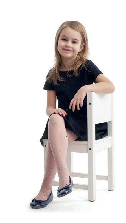 Dziewczęce rajstopki wykonane z wyjątkowo miękkiej mikrofibry. W delikatne serduszka czarne i białe. Przezroczyste, półmatowe. Wykonane z przędzy typu elastan.