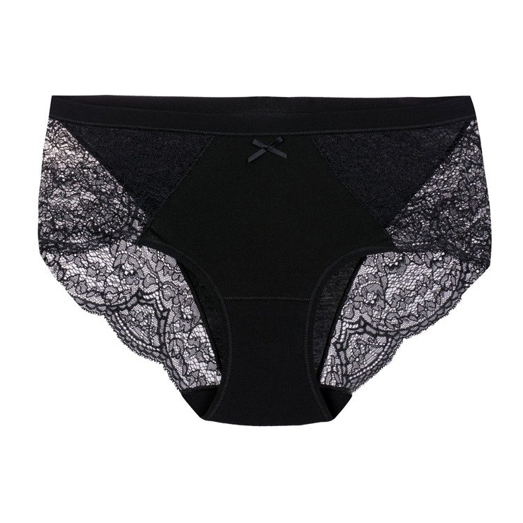 Klasyczne, bawełniane figi typu bokser. Boki i tył wykończone delikatną, efektowną koronką.