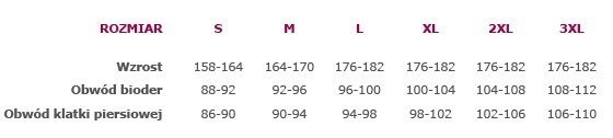 | Rozmiar | Obwód talii | Obwód bioder | Obwód biustu |