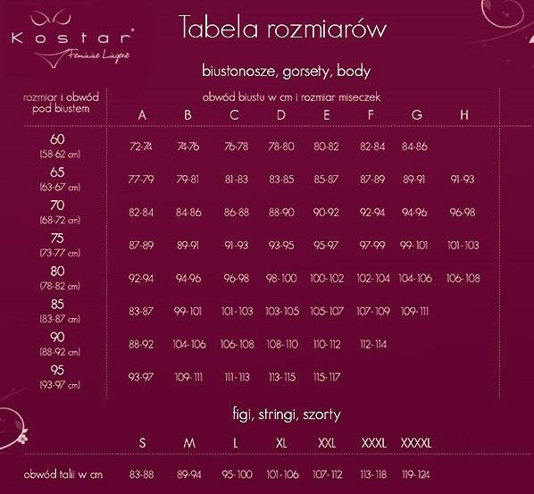 | Rozmiar | Obwód pod biustem | Obwód biustu |