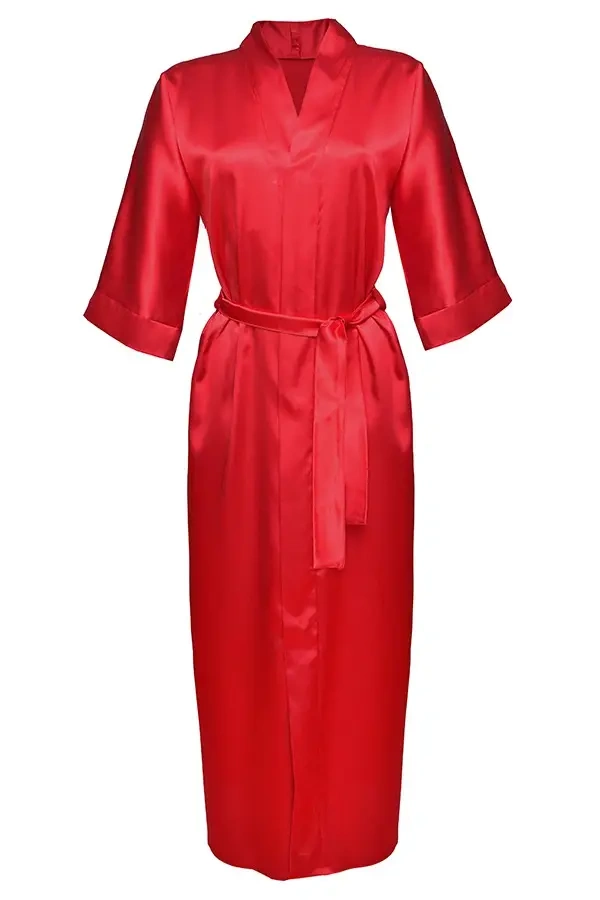 Podomka 130 Satynowy Szlafrok Damski DKaren - czerwony