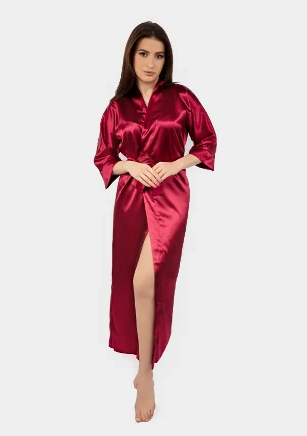 Podomka 130 Satynowy Szlafrok Damski DKaren - bordowy