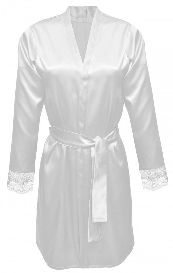 Podomka wykonana z lejącej satyny, o komfortowym kroju jest obowiązkowym elementem garderoby eleganckiej kobiety i sprawdzi się w każdej sytuacji. Efektowne rękawy zakończone śliczną, delikatną koronką. Ta krótka elegancka satynowa podomka posiada pasek, który seksownie podkreśla talię.