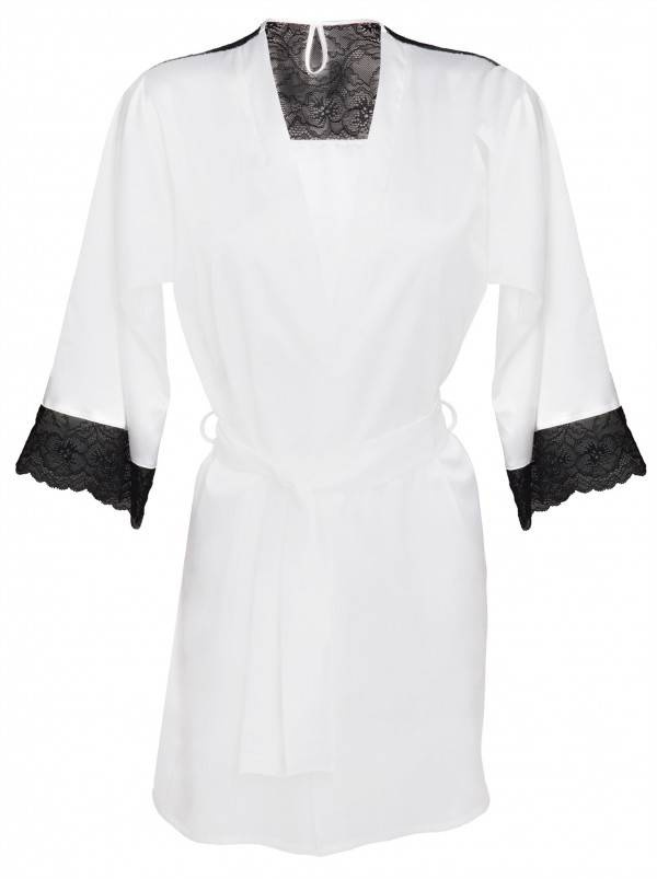 Satynowa zwiewna podomka z szerszymi rękawami oraz satynowym paskiem, który seksownie podkreśli talię. Górę pleców oraz rękawki zdobi delikatna w dotyku efektowna koronka.
