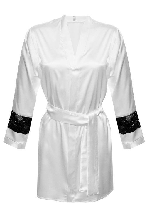 Satynowa zwiewna podomka z prostymi rękawami oraz satynowym paskiem, który seksownie podkreśli talię. Podomkę zdobi przecinająca rękawki delikatna w dotyku efektowna koronka.