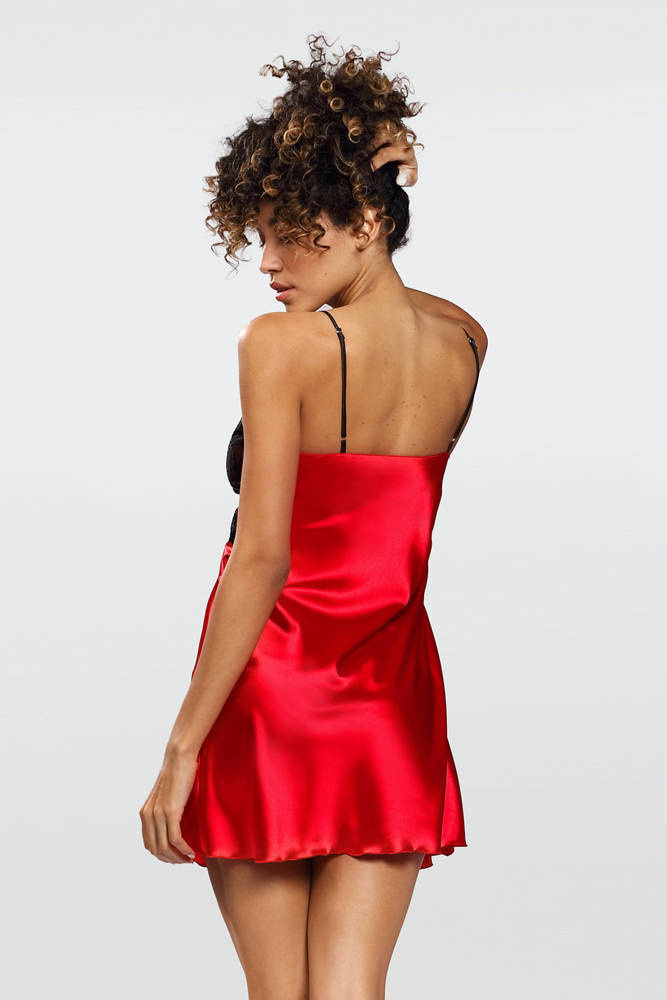 Zmysłowa satynowa haleczka, przód halki tworzą profilowane miski z delikatnej czarnej koronki podszytej satyną, przyozdobiony jest romantyczną kokardką.