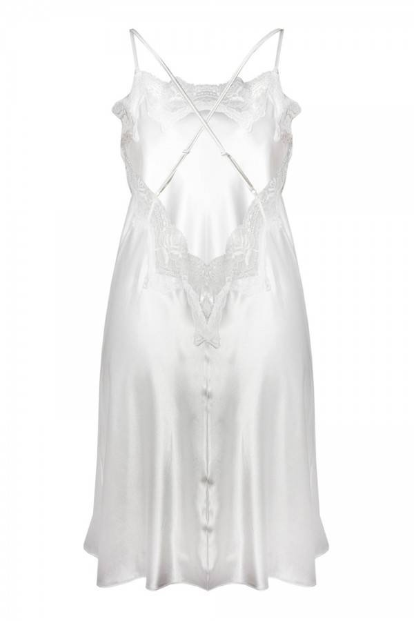 Ramiączka cienkie i regulowane dzięki którym można uzyskać odpowiednio odkryty dekolt. Krzyżowane na tyle. Halkę wykonano z najwyższej jakości delikatnej szlachetnej satyny.