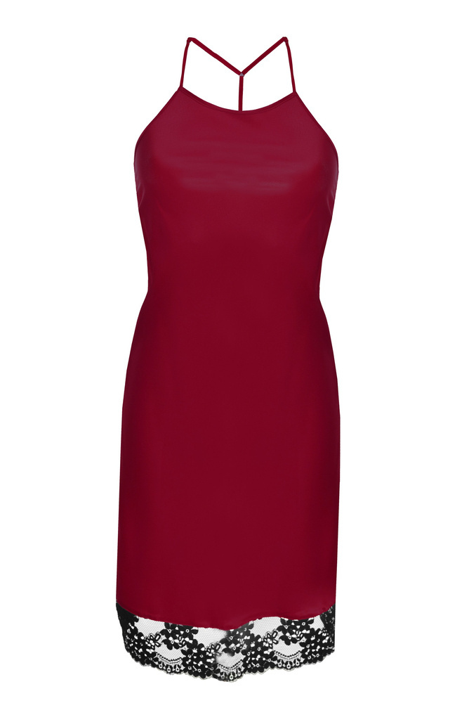 Zmysłowa satynowa haleczka. Przód lamowany z wyciętym tyłem przyozdobionym delikatną koronką. Ramiączka cienkie regulowane tworzące literę Y na plecach. Dostępna w różnych kolorach z czarną koronką.